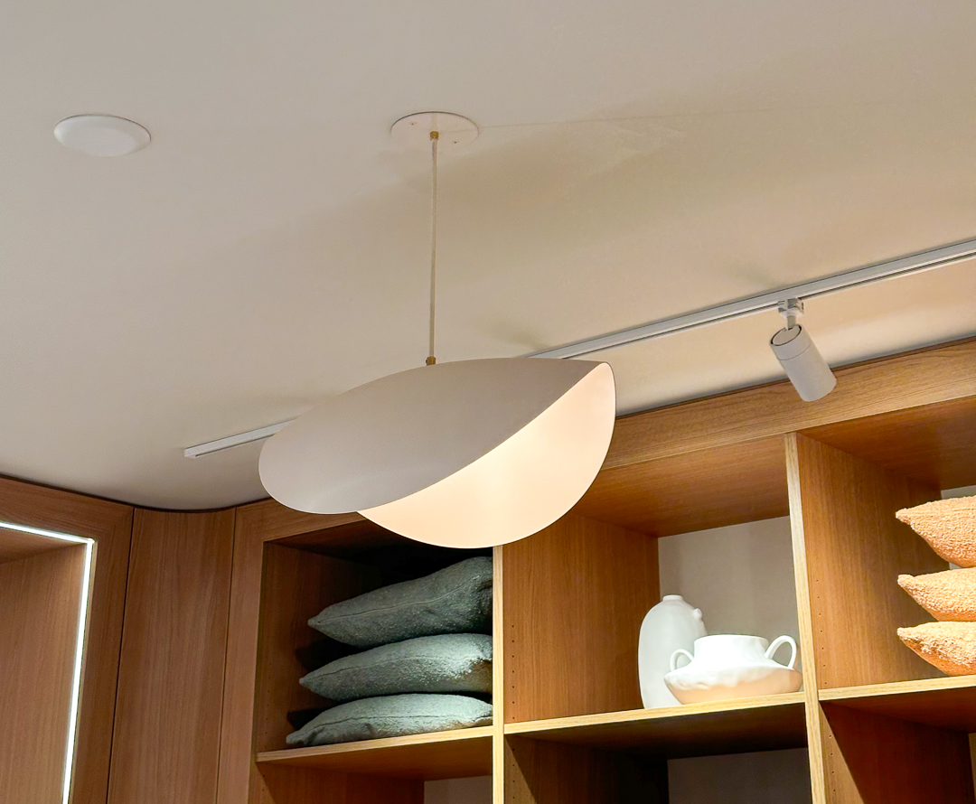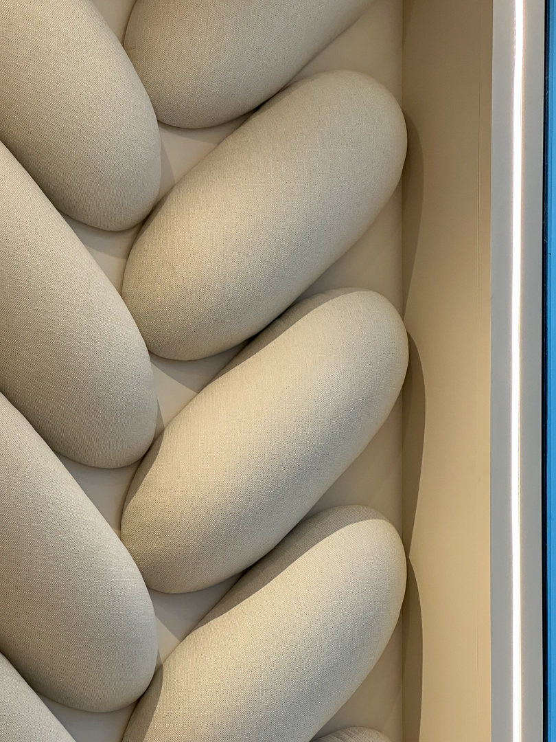 The retail space offered a deep floorplan, which presented an opportunity to create zones to visually delineate customer experience spaces. Zones are identified by recessed lighting that runs the circumference of the space and repeats. The lighting pattern repeats as guests walk deeper into the space, and give guests the feeling of stepping through a gateway as they browse Cozey’s selection of comfortable, modern furniture.