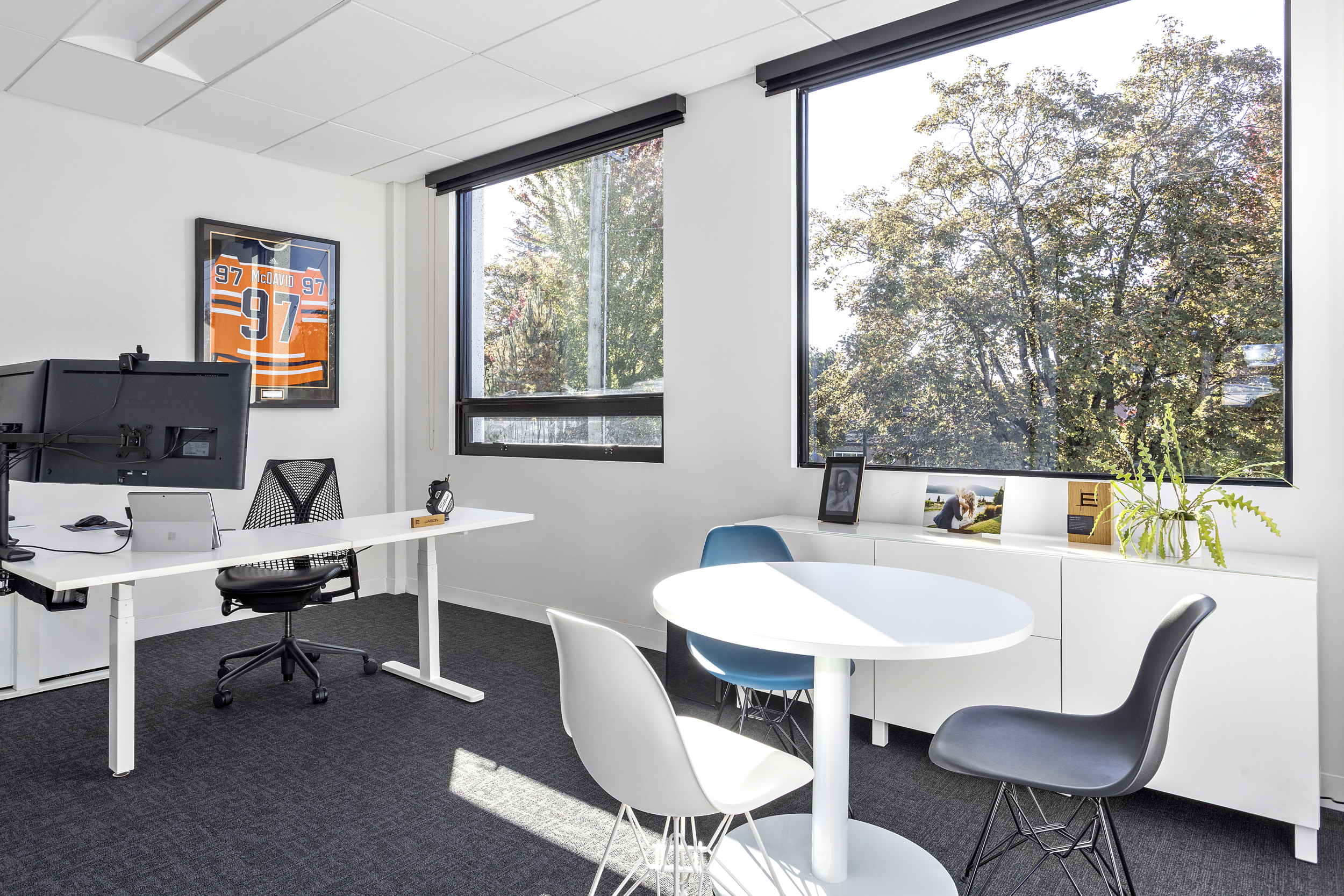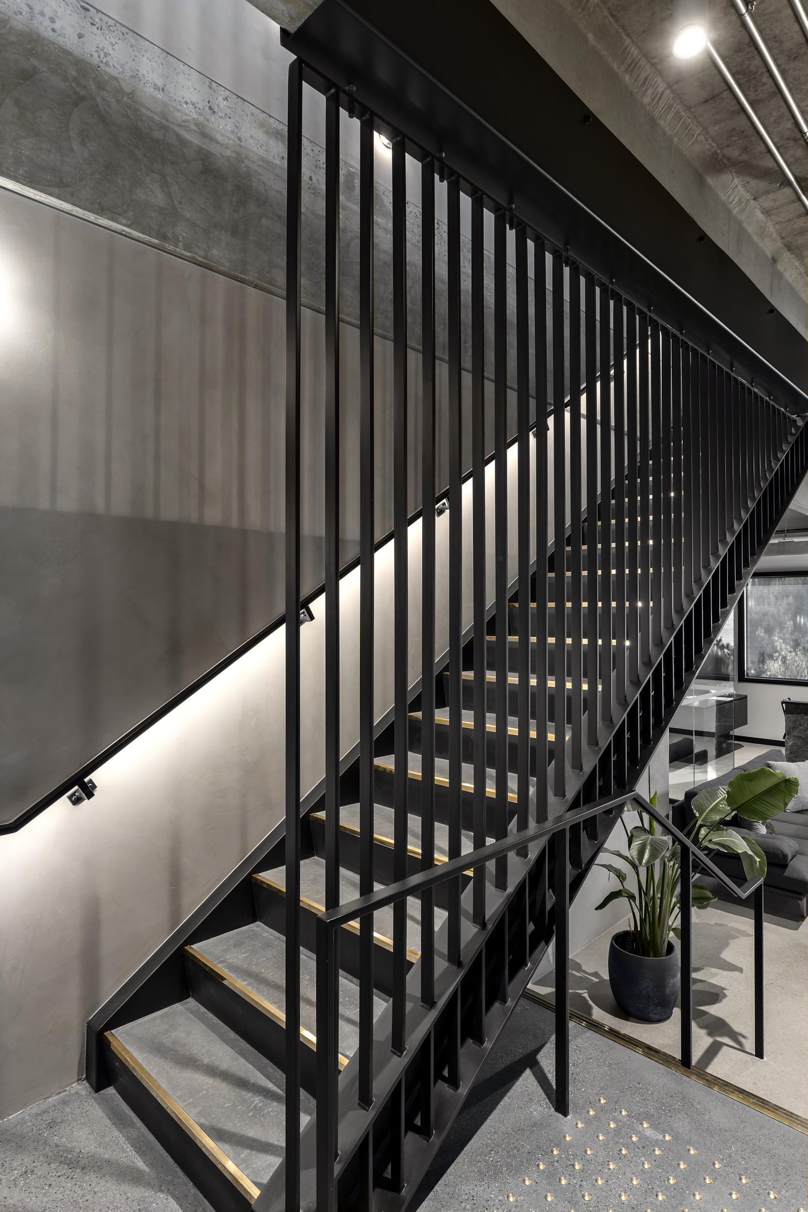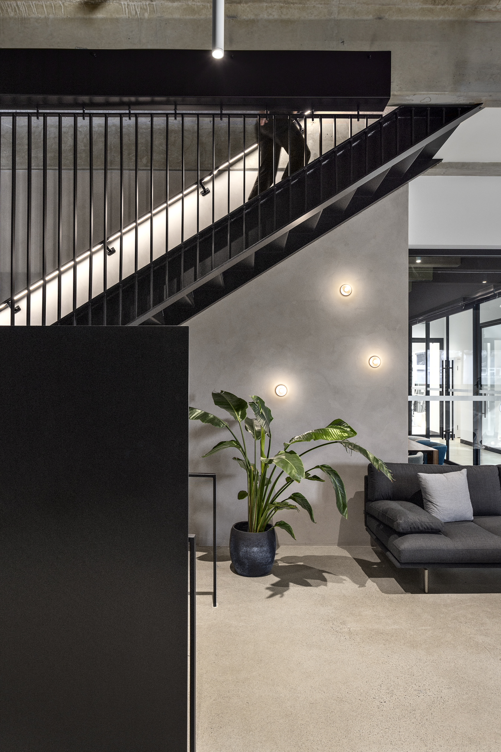 ETRO is a team of professionals committed to building a collaborative environment where people thrive, making them an ideal client. Highly communicative and energized by a clear vision, the team approached the project with enthusiasm and a shared commitment to quality. The resulting design elevates the existing space by emphasizing its inherent architectural character—revealing structural elements that showcase the building’s unique qualities and introducing a central staircase that connects the two floors. This staircase serves as a defining architectural feature, creating a strong sense of arrival and visual connectivity throughout the workplace.