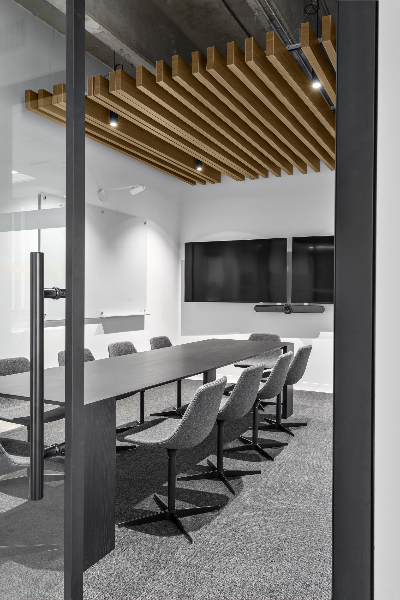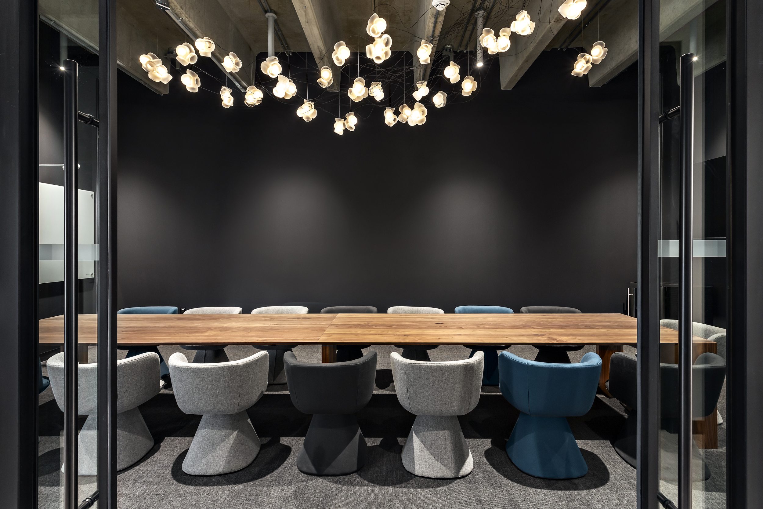 The second level is dedicated to focused work and flexibility, offering a combination of open desking areas, private offices, and additional breakout and boardroom spaces. This variety of work settings allows the space to adapt to diverse work styles while supporting productivity and collaboration across teams.
